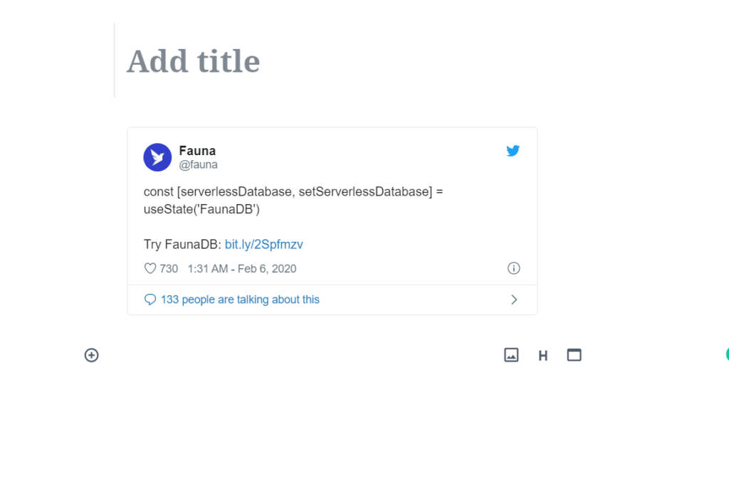 Want to embed a Twitter in your content just copy any status URL from Twitter and paste it here it will automatically embed the tweet in the article or you can select to embed from Embed section.